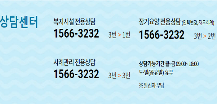 기본적인 사용에 대한 문의 사항들은 상담센터를 통해서 확인을 하시면 되겠습니다. 복지시설전용상담은 1566-3232번으로 거시서 3번 1번을 누르면 되시겠죠. 사례관리를 전문으로 하는 곳은 동일한 곳에서 3번 3번으로 선택하시면 된다고 하니 참고하시기 바랍니다.