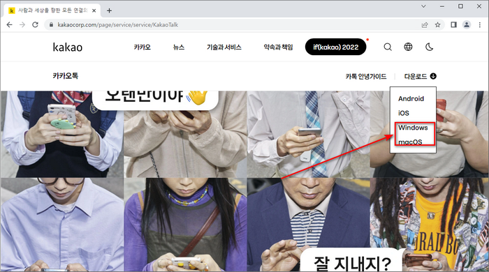 그 밑에 보이는 windows 또는 macOS가 우리가 말하는 카카오톡 pc버전 다운로드 입니다. 사용자에 운영체제에 맞는 것을 받아야하는 것은 당연하겠죠.