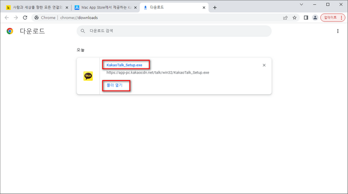 실제로 저장된 카카오톡 pc버전의 위치를 모르는 분들은 크롬 웹브라우저의 기능을 활용하시기 바랍니다.