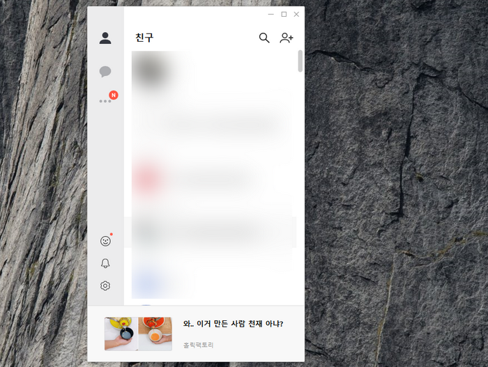 문제없이 인증까지 했다면 이제 저랑 같은 모습의 창이 열립니다. 대부분의 매신져와 사용은 같은데요. 왼쪽 하단에 아이콘을 사용하시면 설정도 바꿀 수 있습니다.