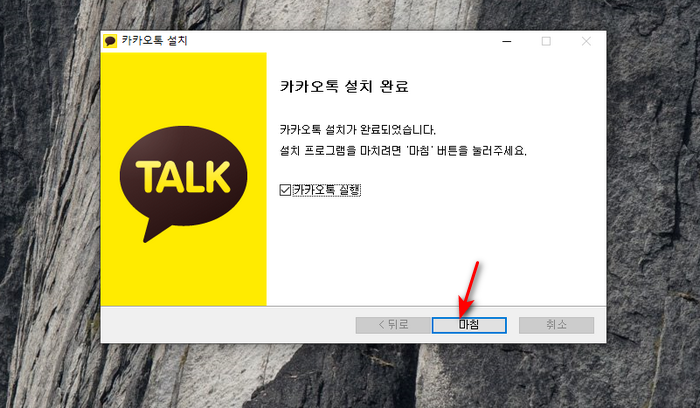 이제 하단에 있는 마침을 선택해서 카카오톡을 실제로 실행해보도록 하겠습니다.