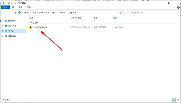 로컬 하드디스크에 저장된 카카오톡 pc버전 설치 파일을 찾으셨다면 이제 실행하시면 됩니다.