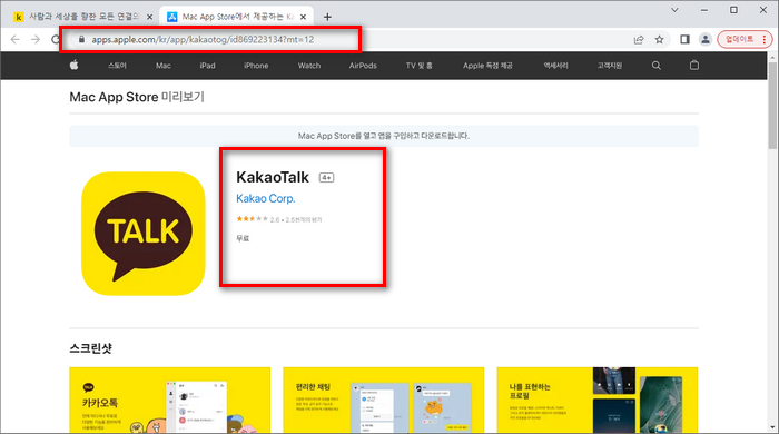이 둘의 차이가 있다고 한다면 당연히 카카오톡 pc버전을 다운로드 받을 때 어디에서 받는가 하는 것인데요. 윈도우 버전이야 바로 저장할 수 있지만 macOS 같은 경우에는 앱스토어로 이동 되니 거기서 받으면 됩니다.
