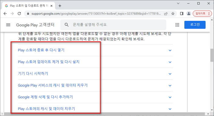 그게 아니면 체크해야하는 것이 인터넷 연결 상황입니다. 정상적으로 인터넷이 안되고 있다면 다운로드는 절대 받을 수 없자나요. 그땐 와이파이 연결 변경, 앱 캐시 및 데이터 삭제로 해결되는 경우도 있거든요. 이 외에 다른 방법은 구글 플레이 스토어 고객센터를 통해서 체크해 볼 수 있습니다.